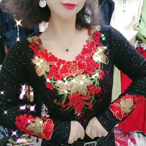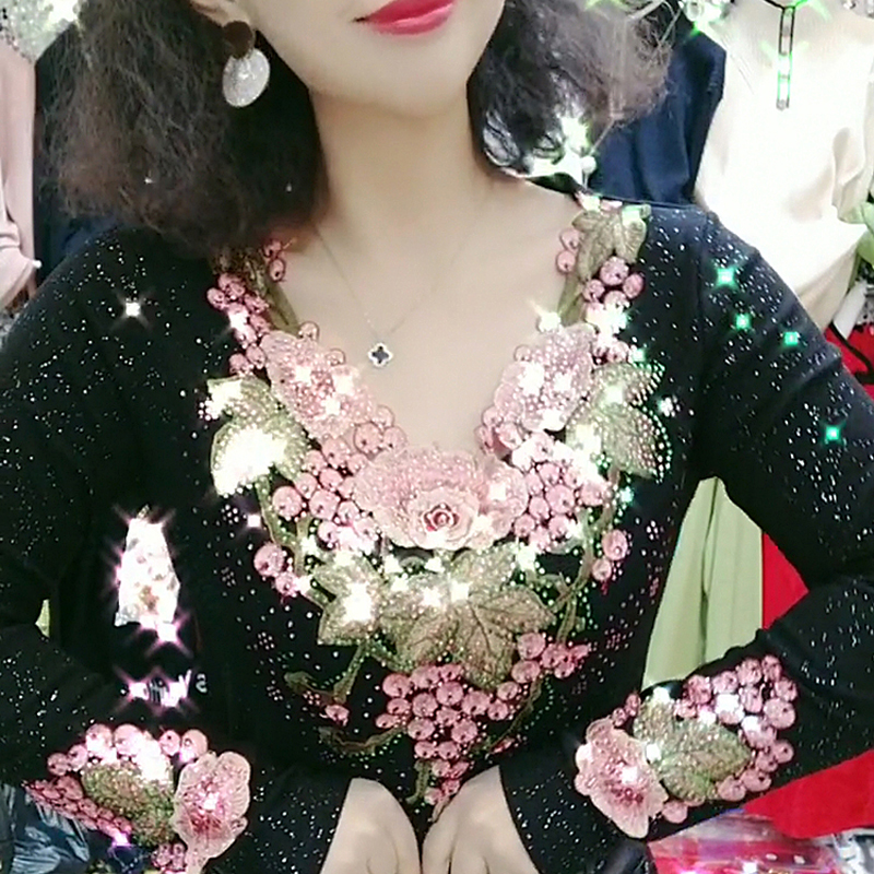 2022 autumn and winter new velvet temperament top women's long-sleeved T-shirt Western style net red lace embroidered bottoming shirt Korean version