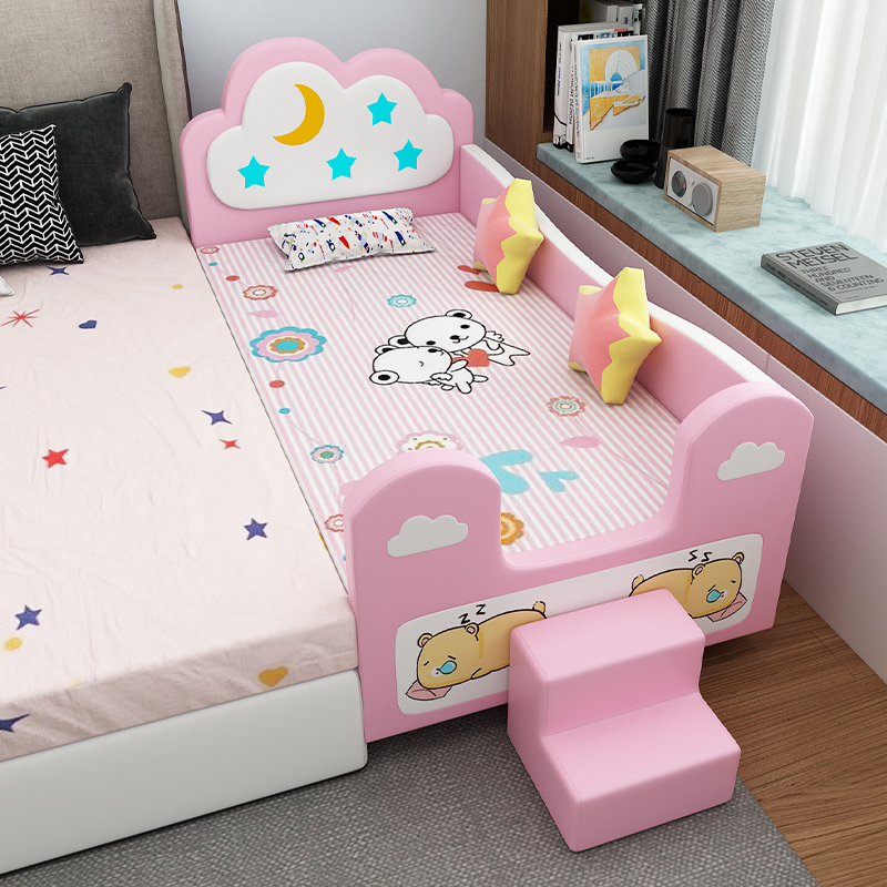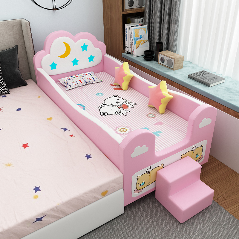 Children's bed splicing bed widening bed big bed extension side plus small bed girl princess cartoon leather bed solid wood raised guardrail