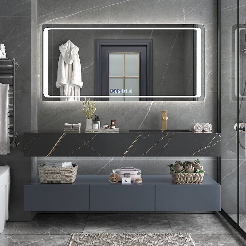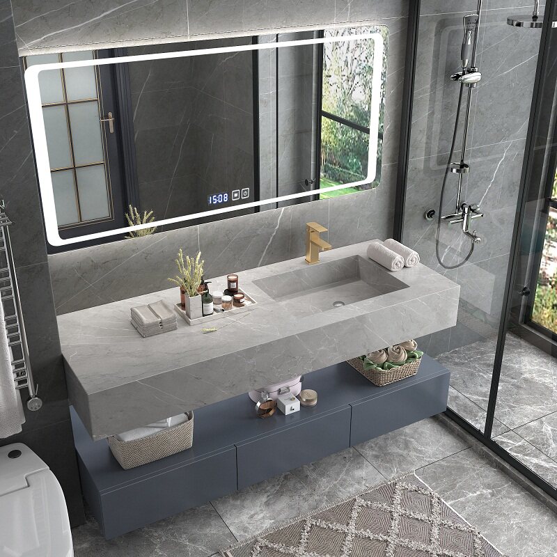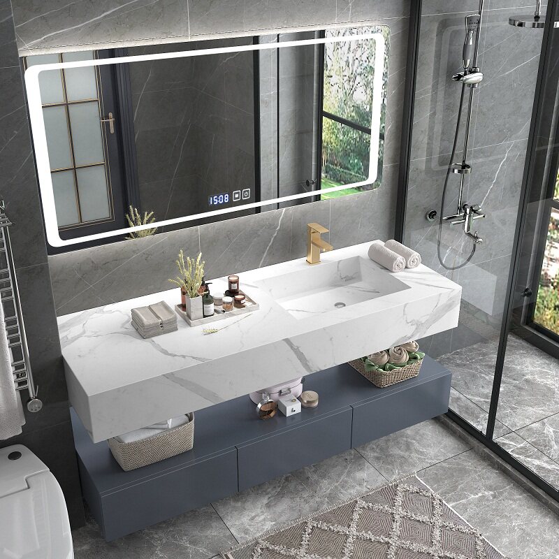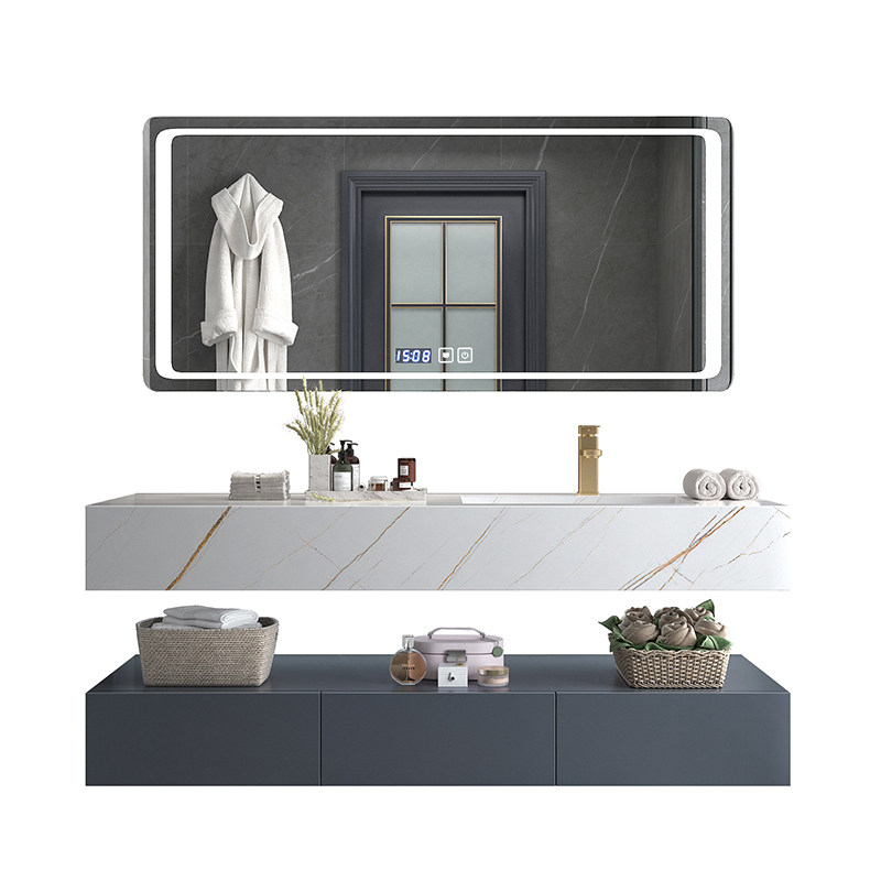 Rock-in-one bathroom cabinet combined bathroom smart light luxury modern minimal double basin toilet toilet wash