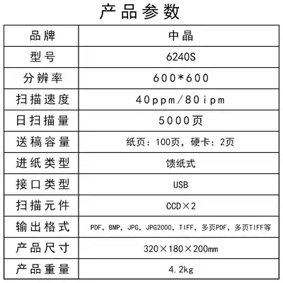 Zhongjing 6240 scanner fast scanning machine continuous scanning color double-sided speed scanning automatic high speed scanning machine