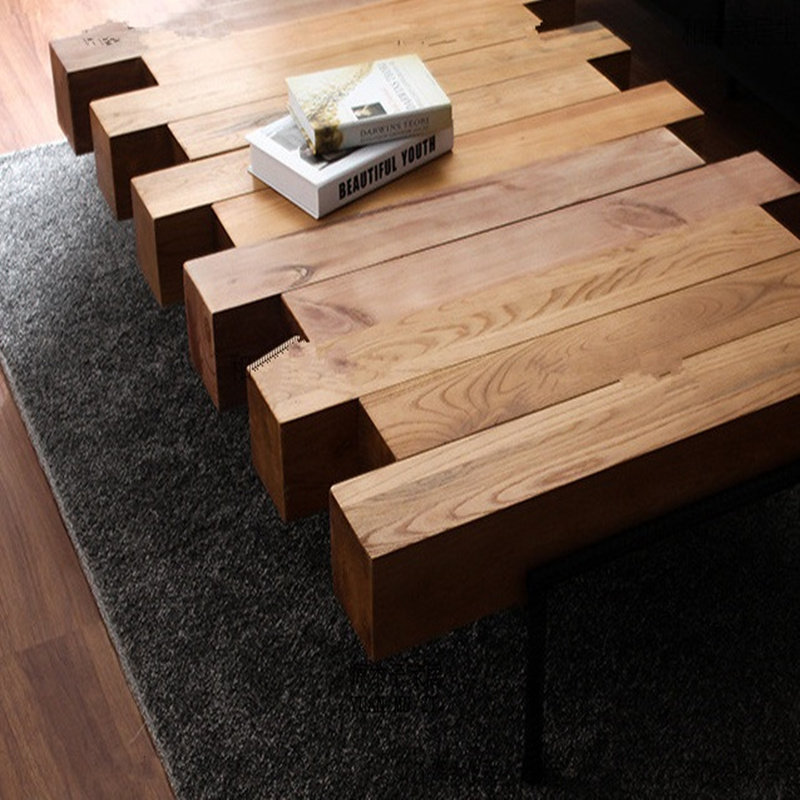 Nordic modern simple personality creative living room solid wood coffee table retro old industrial style log small tea table