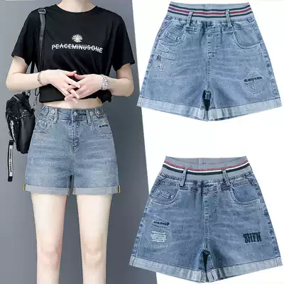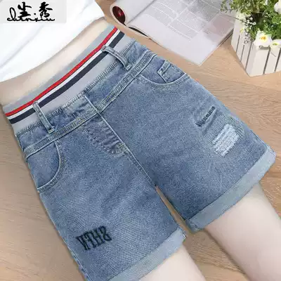 Elastic waist denim shorts women 2021 new summer thin loose high waist wide legs big size summer jeans