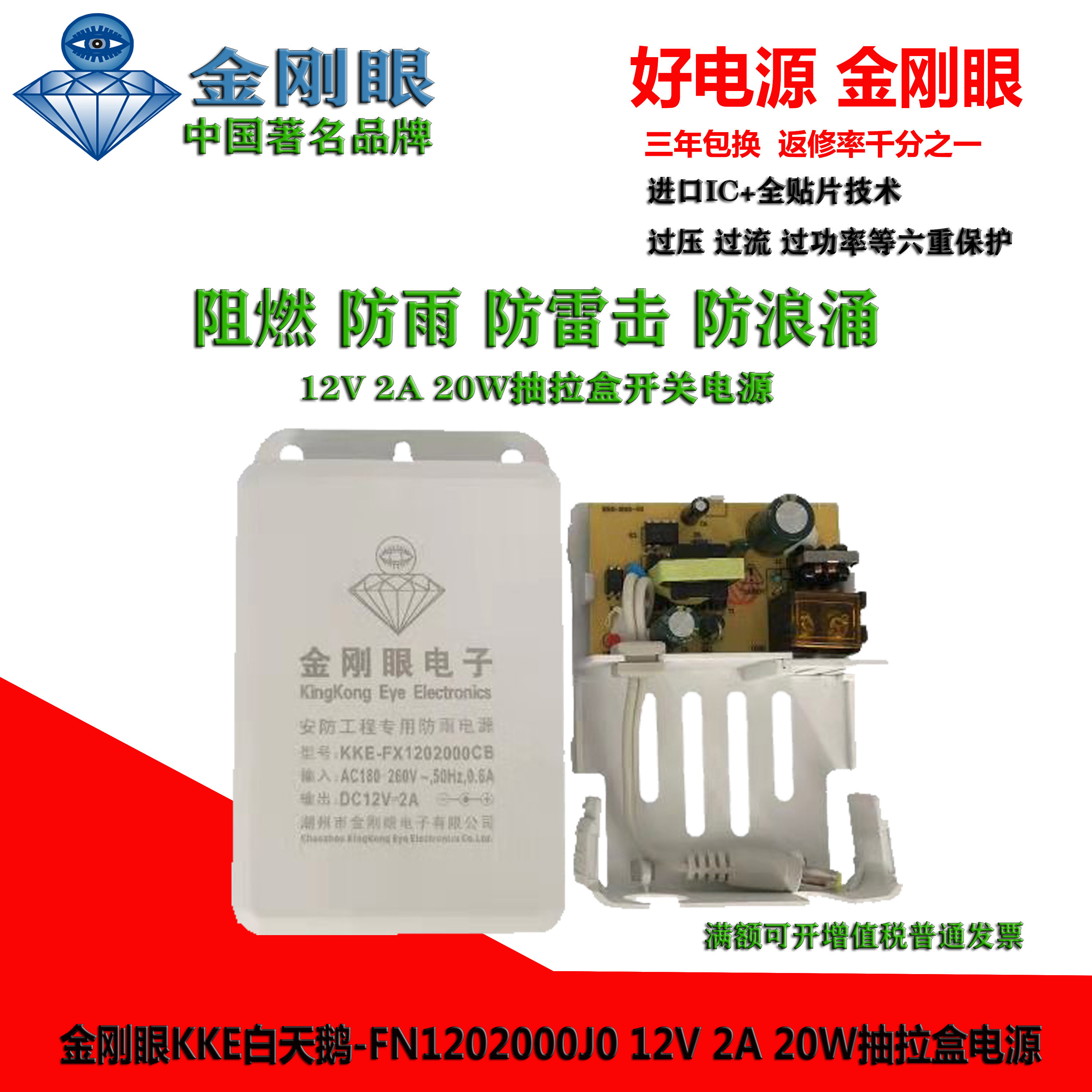 Original diamond eye white swan 12V2A24W surveillance camera lens voltage stabilizer outdoor waterproof switch power adapter