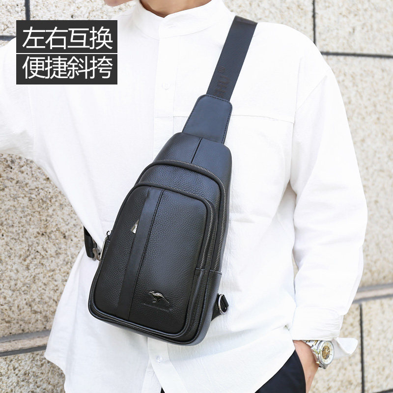 Hongyan Kangaroo men's chest bag messenger bag leather cowhide new fashion single shoulder bag oblique shoulder bag casual crossbody bag tide