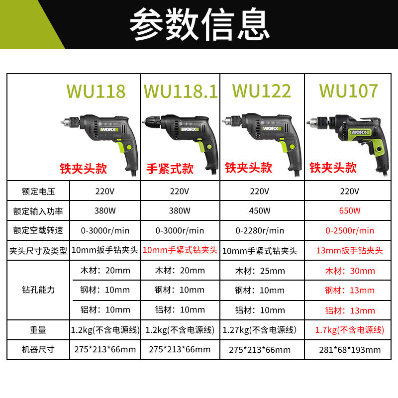 Wekse industrial-grade electric drill WU107 High power 220v plug-in electric electric drill electric drill electric drill