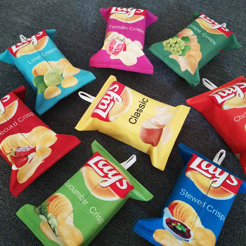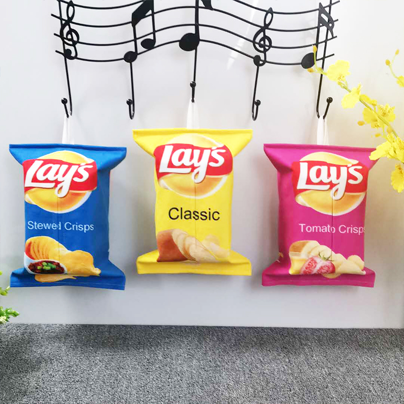Paper towel bag fabric cartoon cute creative flannel potato chips paper towel pack hanging type living room home car tissue box