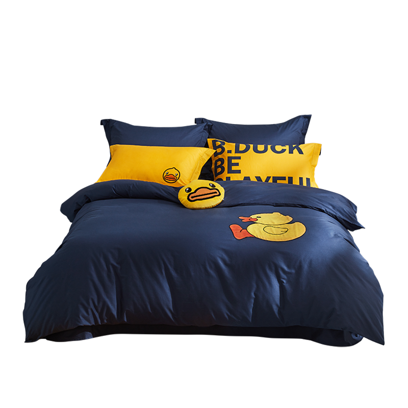 LOVO LOVO 4-piece cartoon children cotton cotton quilt cover yellow duck fun life