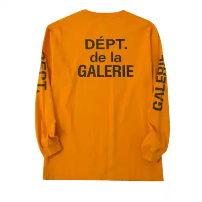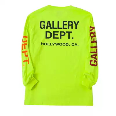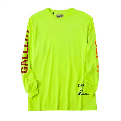 Roaring Little Eyes Gallery Dept Fluorescent Yellow Green Orange Letter Print Pullover Round Neck Long Sleeve T-shirt
