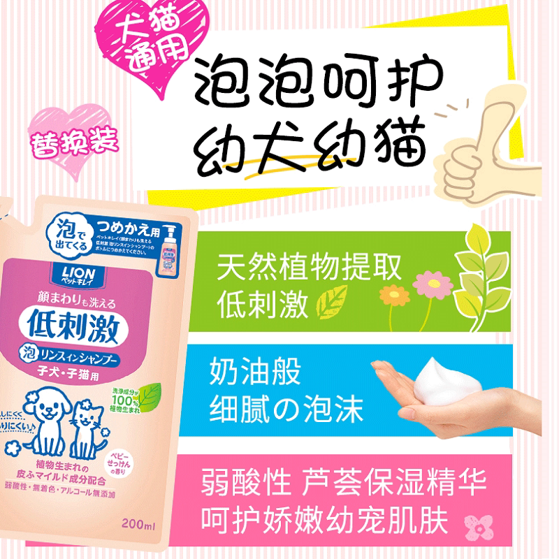 LION Lion Wang Ei Puppy Puppy Puppy Dog Cat Bath Low stimulation foam Shampoo 230ml