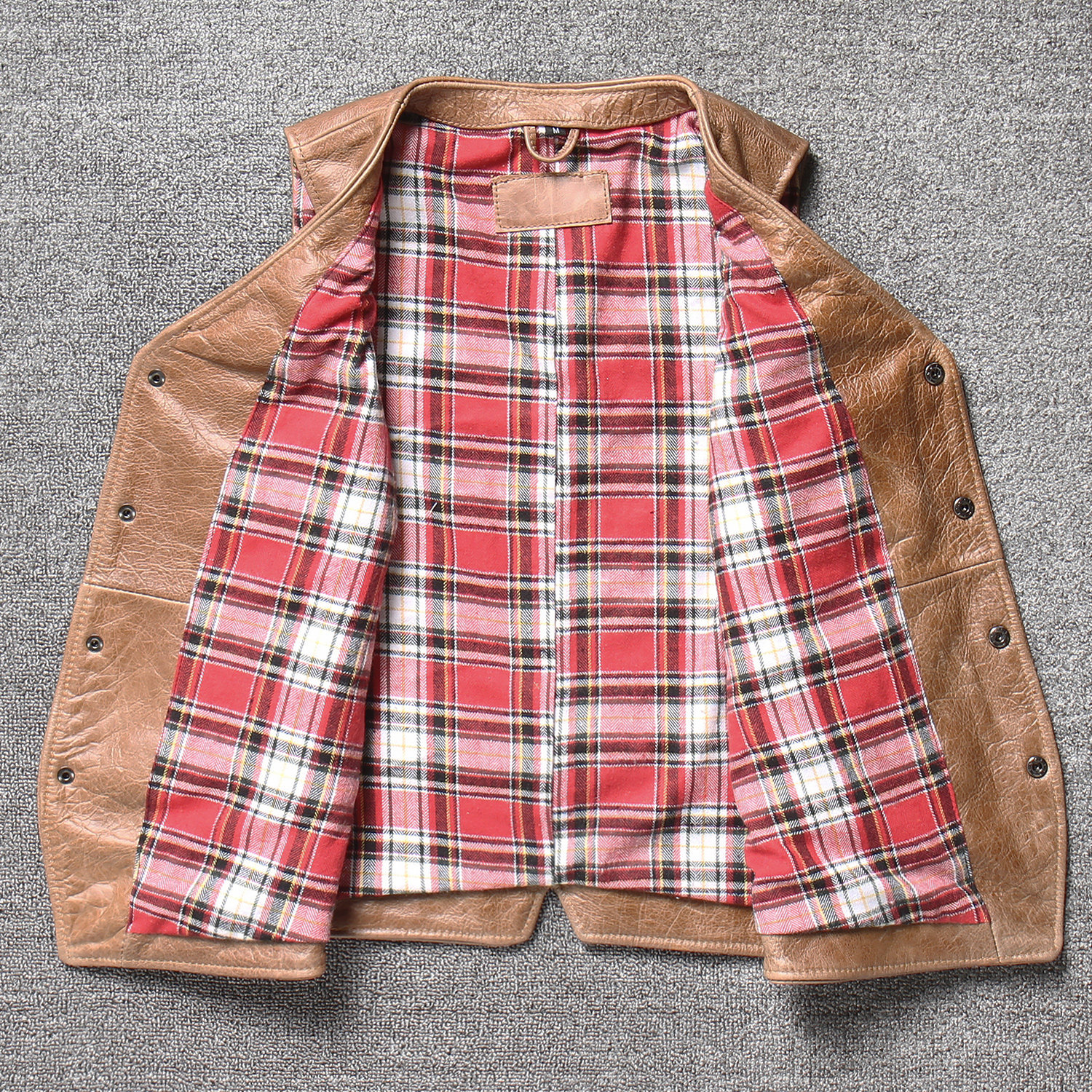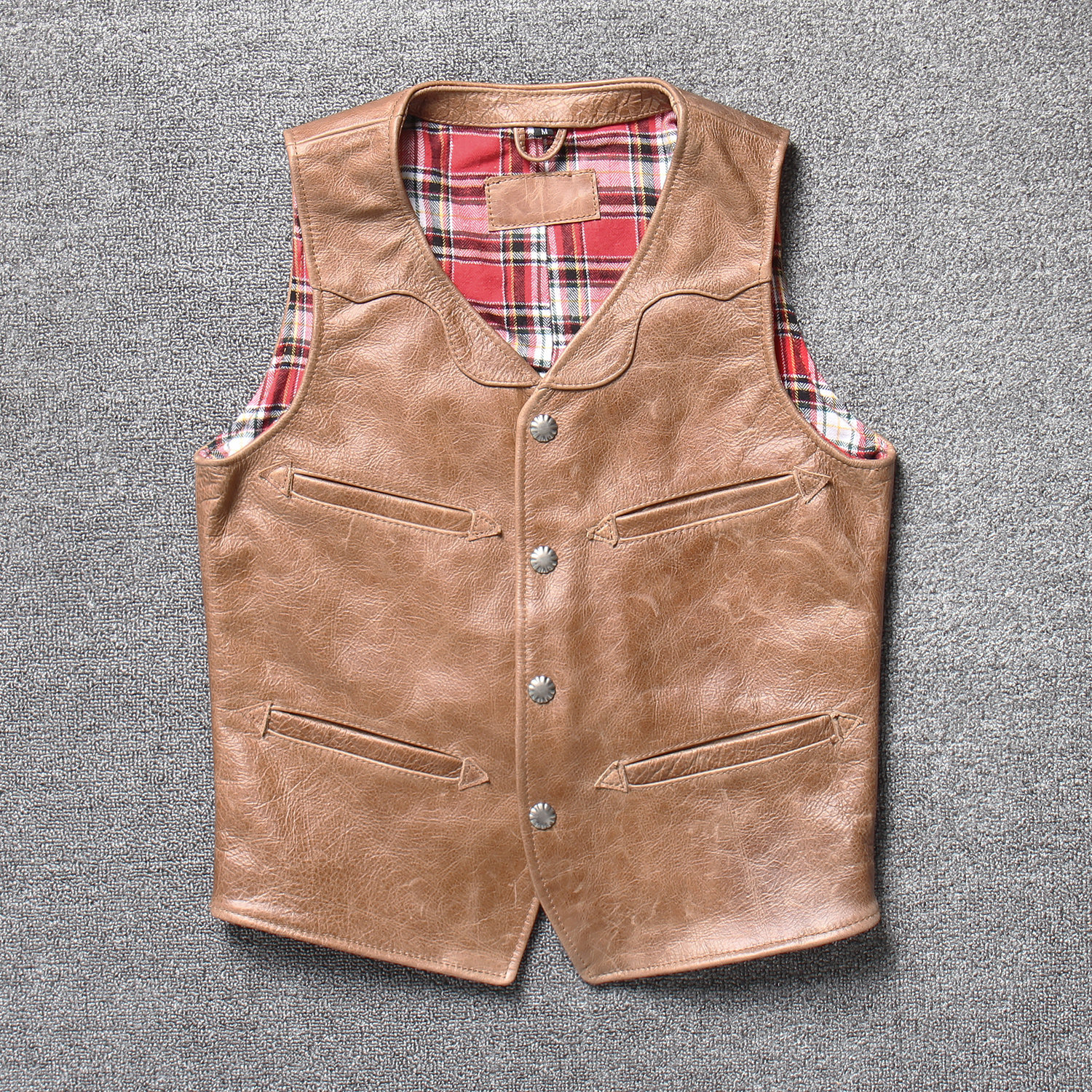 New genuine leather fur coat men's head layer of cow leather fashion personality leather vest Amei click on short leather vest