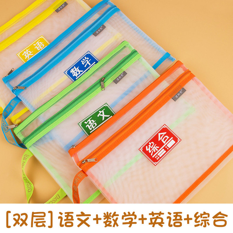 Student A4 Transparent mesh Paper Bag Double layer Chinese Mathematics English Subject classification Homework Paper storage bag