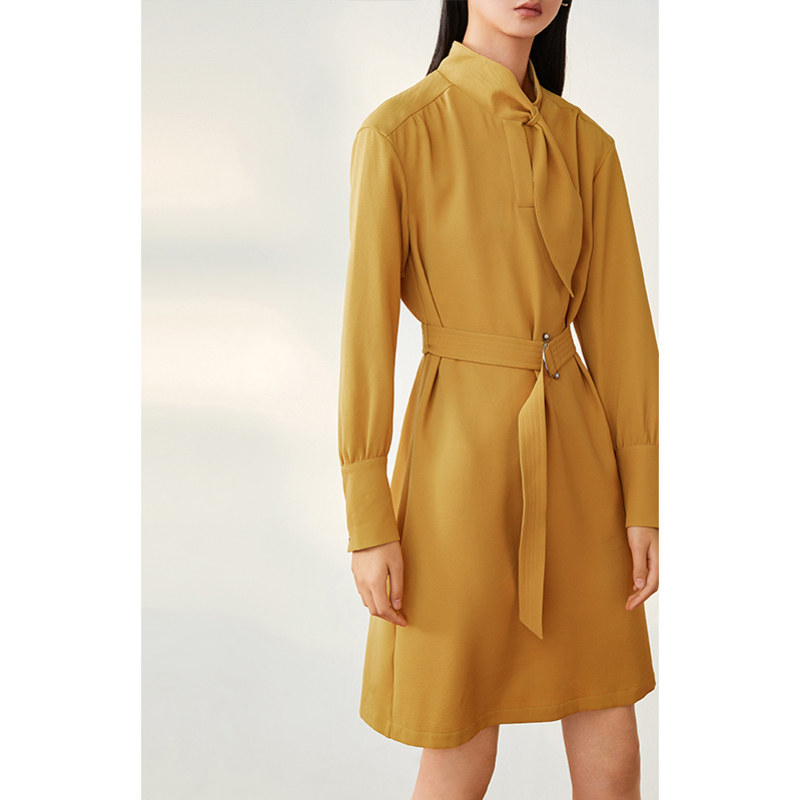 LILY Spring new women's clothing asymmetrical wafting to lead the twill pure color foreign dress 120100C7247