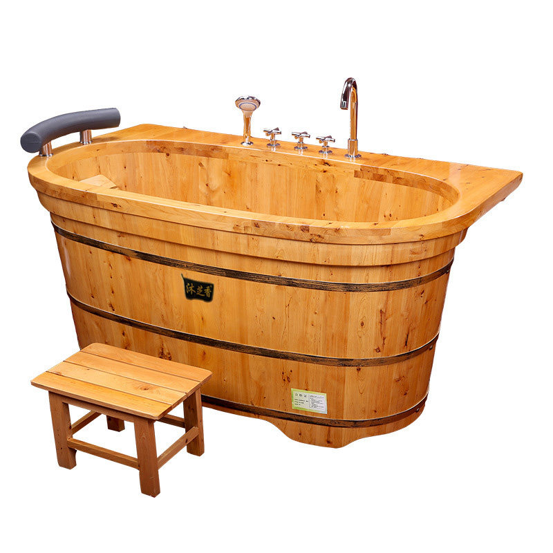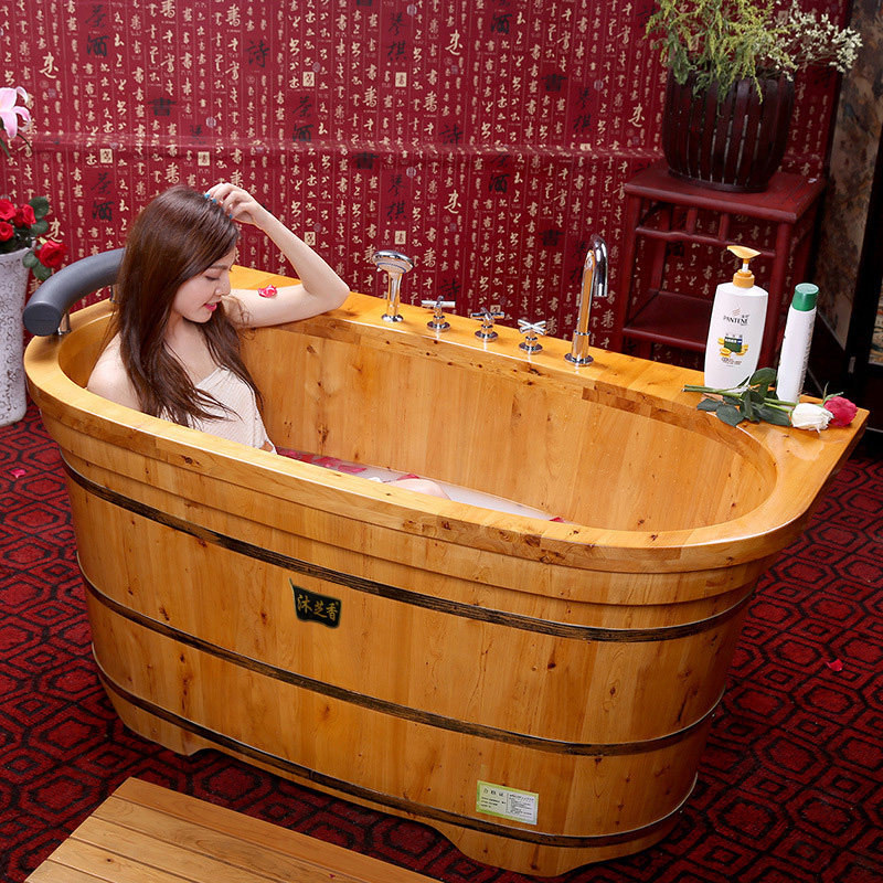 With faucet bath barrel adult whole body home bath bath fumigation bath barrel Chinese-style solid wood bathtub barrel