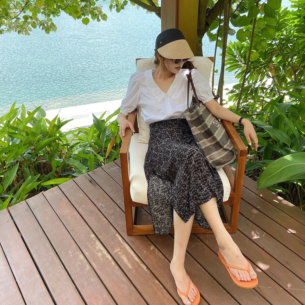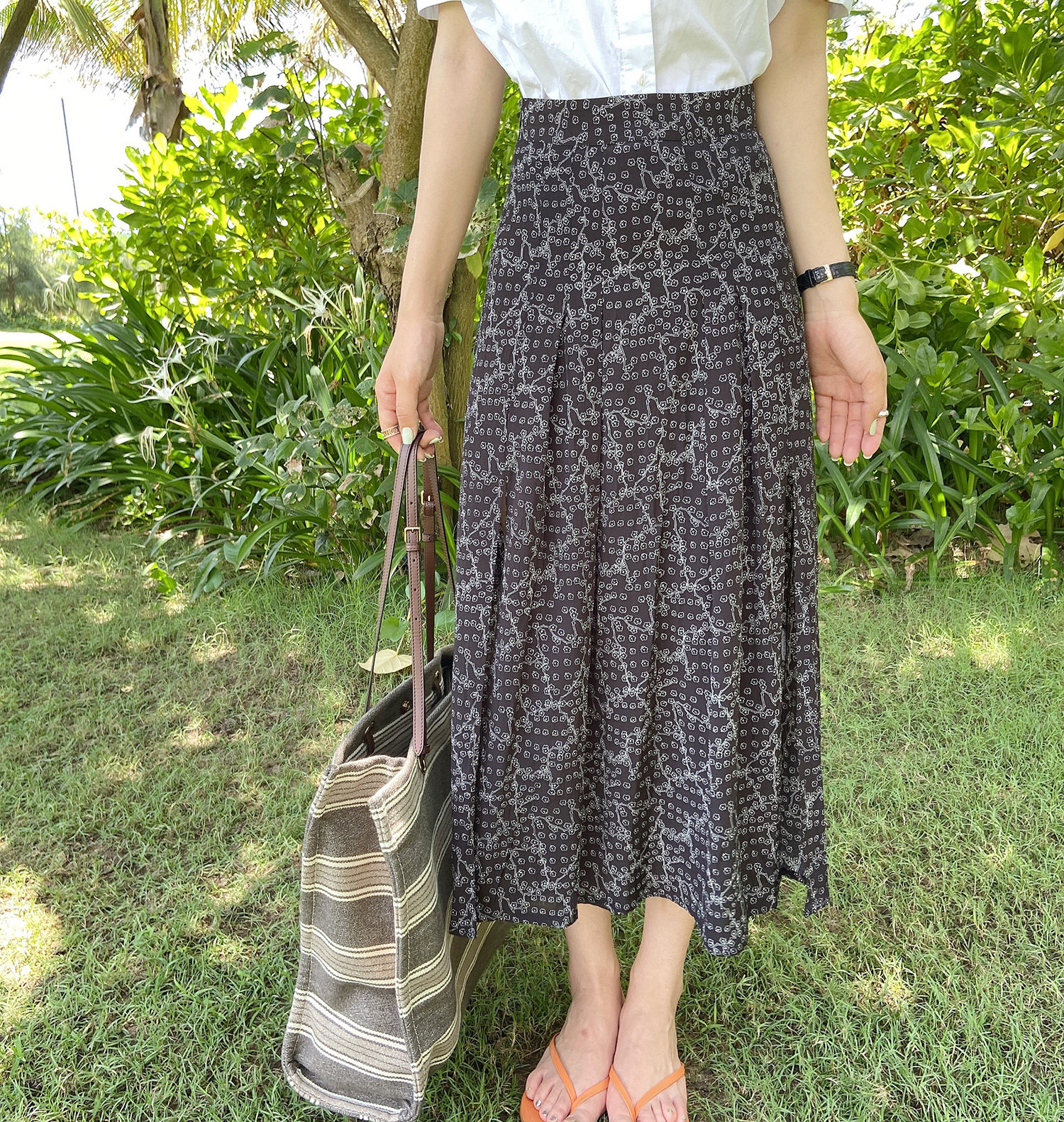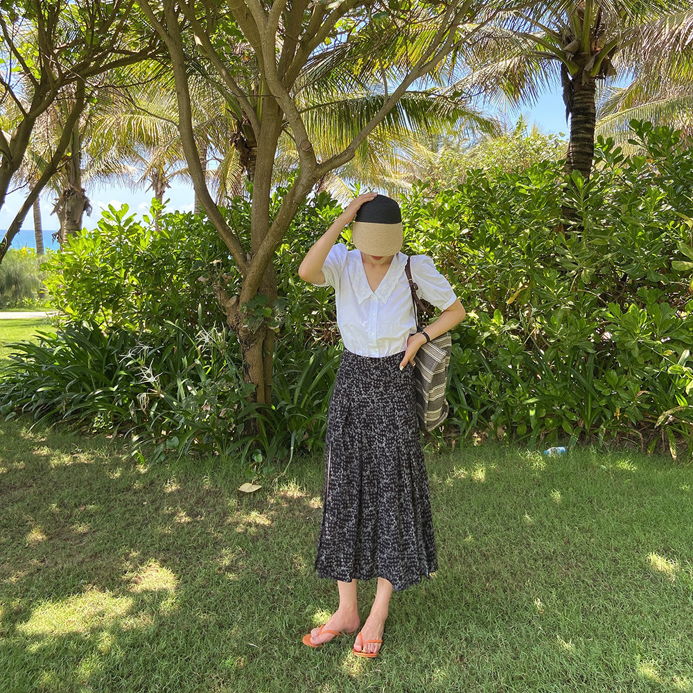 Small Lajia Green Open Fork Woman High Waist Side Pull Necklace 100 Lap Super Cool Quick Black Printed Half Body Dress Summer Pituality