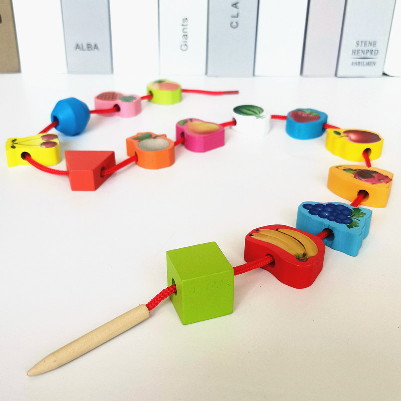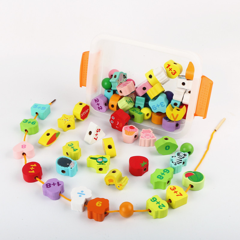 Baby boy strings string beads threading early teaching building blocks 1-3-6 years old male girls wearing wooden beads baby Eintellectually toys