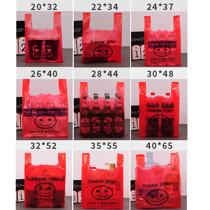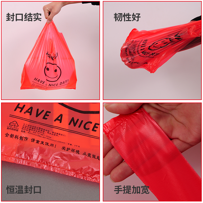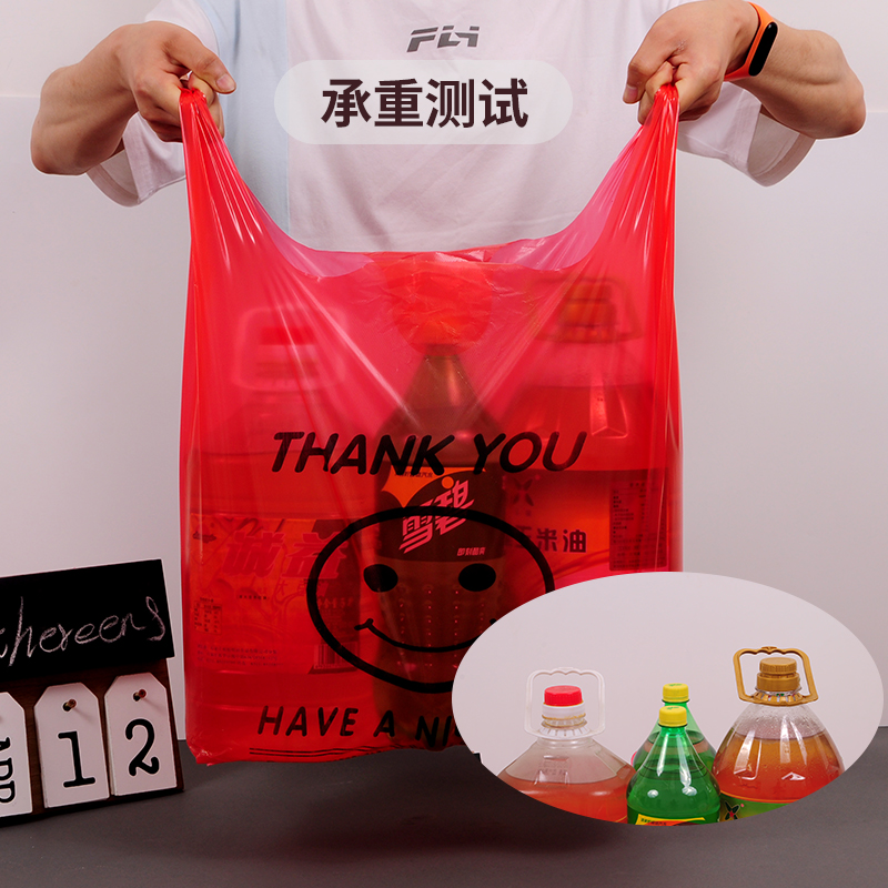 Red smiley plastic bag food bag thickened disposable vest bag commercial catty portable delivery convenient shopping bag