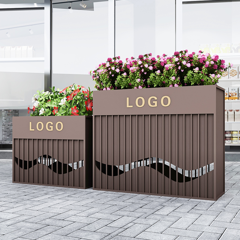 Outdoor new Wrought iron flower box Large square sample house Display center Commercial street Planting flower trough Rectangular combination flower bed