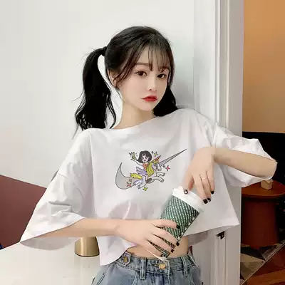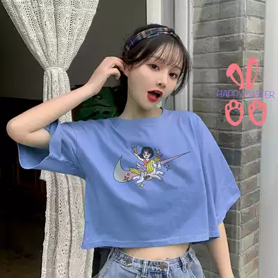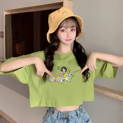 Pure cotton niche short sleeve t-shirt women's summer ins tide loose navel high waist clothes design feeling girlfriends