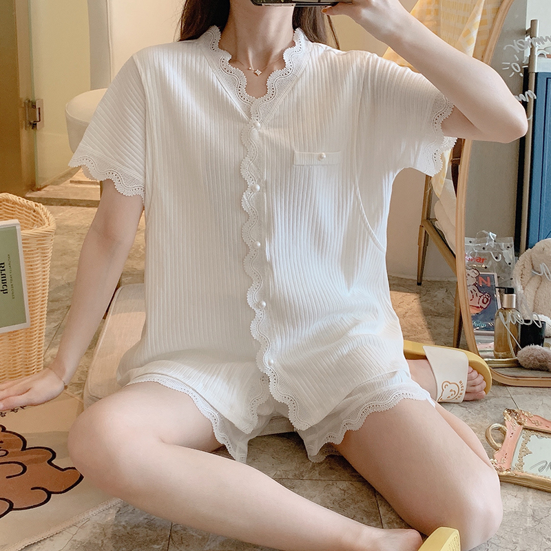 Short-sleeved cotton maternity pajamas Summer thin postpartum lactation nursing home clothes July 8 sweat-absorbing month clothes