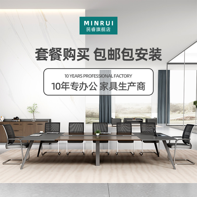 Desk Desk Simply modern office furniture long tableste frame walnut wood-colored worktable meeting room table