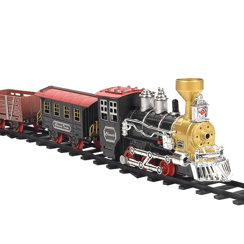 (Deluxe version) Classical steam train with 3 carriages (add water and smoke) with battery (luxury version) Classical steam train with 3 cars (add water and smoke) with charging set (Hao)