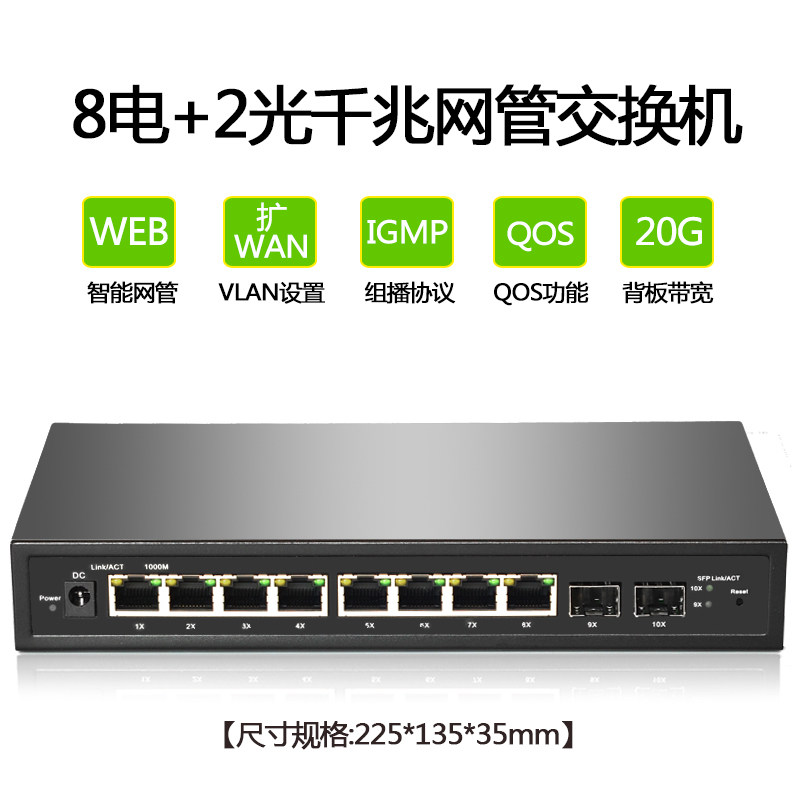 8 ports of 2SFP light opening all one thousand trillion non-webmaster 8 openings 2SFP light opening all one thousand trillion network management 8 ports 2SFP photoports full one thousand trillion full network management (SNMP)
