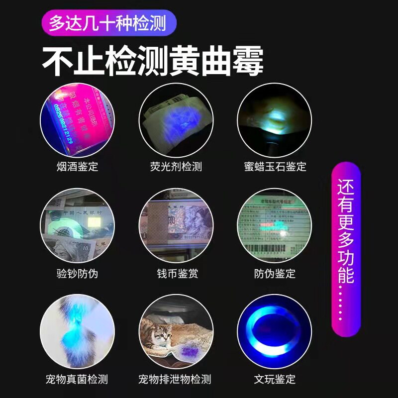 White Light Appraisal Flashlight Ultraviolet banknote Purple Light Violet Light Plate Yellow Kilamold Mycogopus double light fluorescent agent detection pen