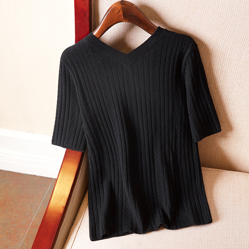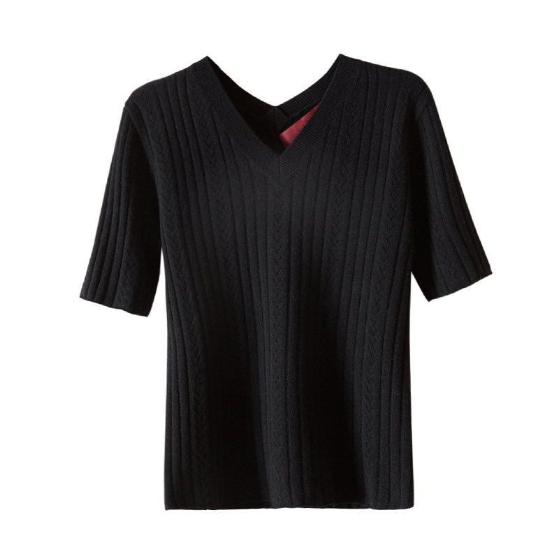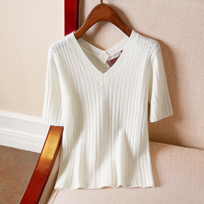 22 summer new women's double V-neck cashmere sweater short section hollow short-sleeved knitted bottoming cardigan pullover sweater T-shirt