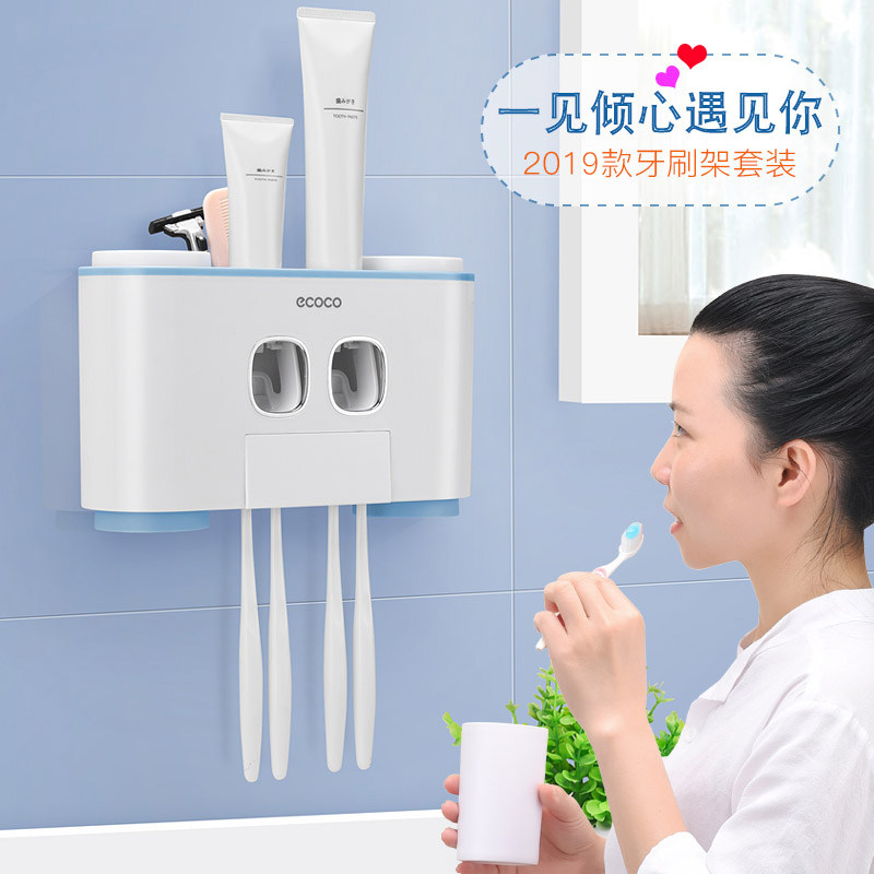 Fully automatic squeeze toothpaste artifact wall-mounted extruder set home punch-free toilet toothbrush shelf