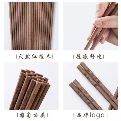 Rich and noble family red sandalwood chopsticks household high-grade non-lacquered wood tableware ten pairs of family clothes