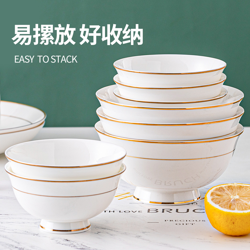 Phnom Penh European-style household bowl single pure white bone china rice bowl ceramic porridge noodle bowl simple eating bowl can be microwaved