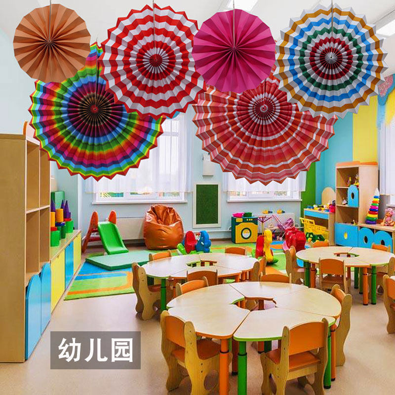 Paper Fan Flower Decoration Laflower Mall Shop Kindergarten Hanging Accessories Shop Window Room Overhanging Ceiling Air Hanging Decoration Scene Arrangement