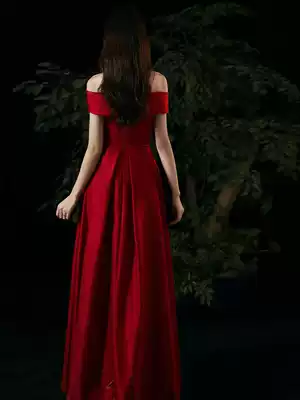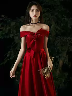 Toast Bride 2021 new summer red satin back door dress female temperament thin shoulder small man