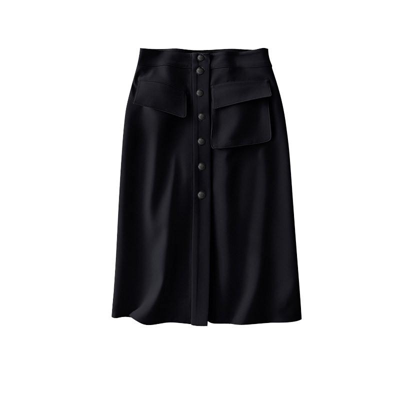 Commuter bombing Sky Small Crowd Design Sense Asymmetry Cut A Character Half Body Skirt High Waist Retro Single Row Buttoned One Step Skirt