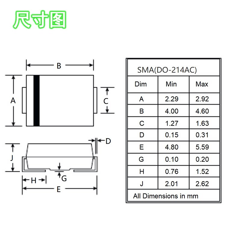 SS14 SS24 SS34 SS36 SS54 SS56 SS310 Patch Schottky Diode SMA