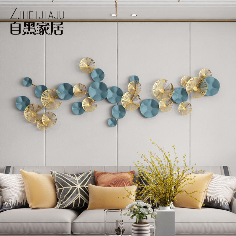 Living room sofa wall decoration wrought iron lotus leaf wall decoration dining room wall hanging background wall creative Nordic wall decoration pendant