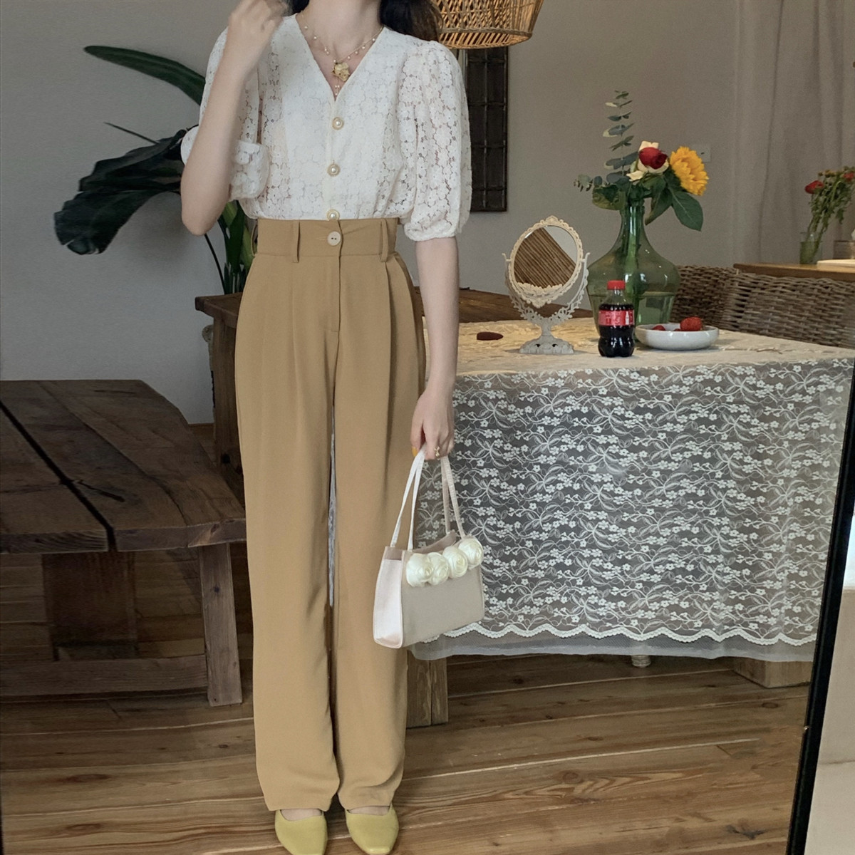 SYT Moden retro high waist thin straight tube suit female spring summer 2023 new pitch slim casual pants