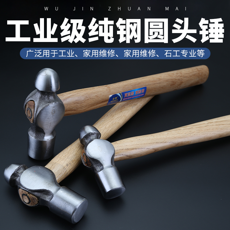 Round head hammer wood handle iron hammer milk hammer woodworker installation hammer hammer head home small hammer tool steel hammer hammer hammer hammer