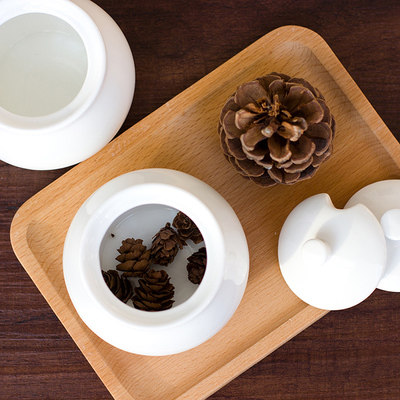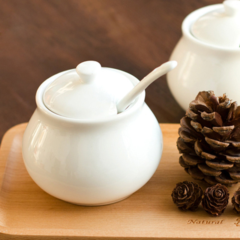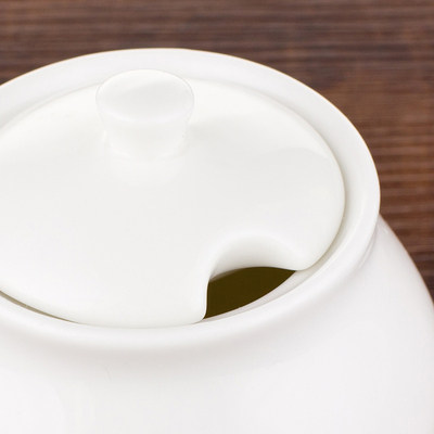 Ceramic jar Pure white porcelain round sugar jar with lid Coffee sugar block milk jar kitchen honey seasoning jar