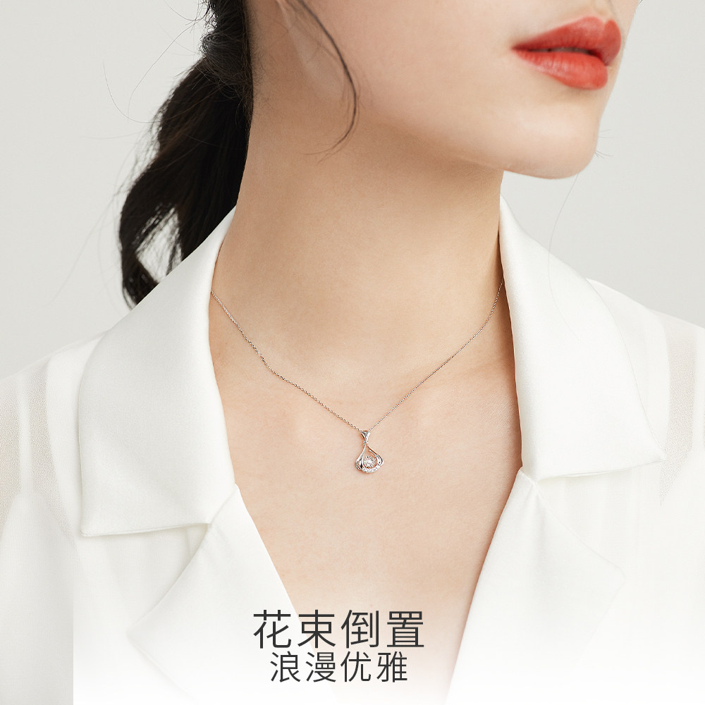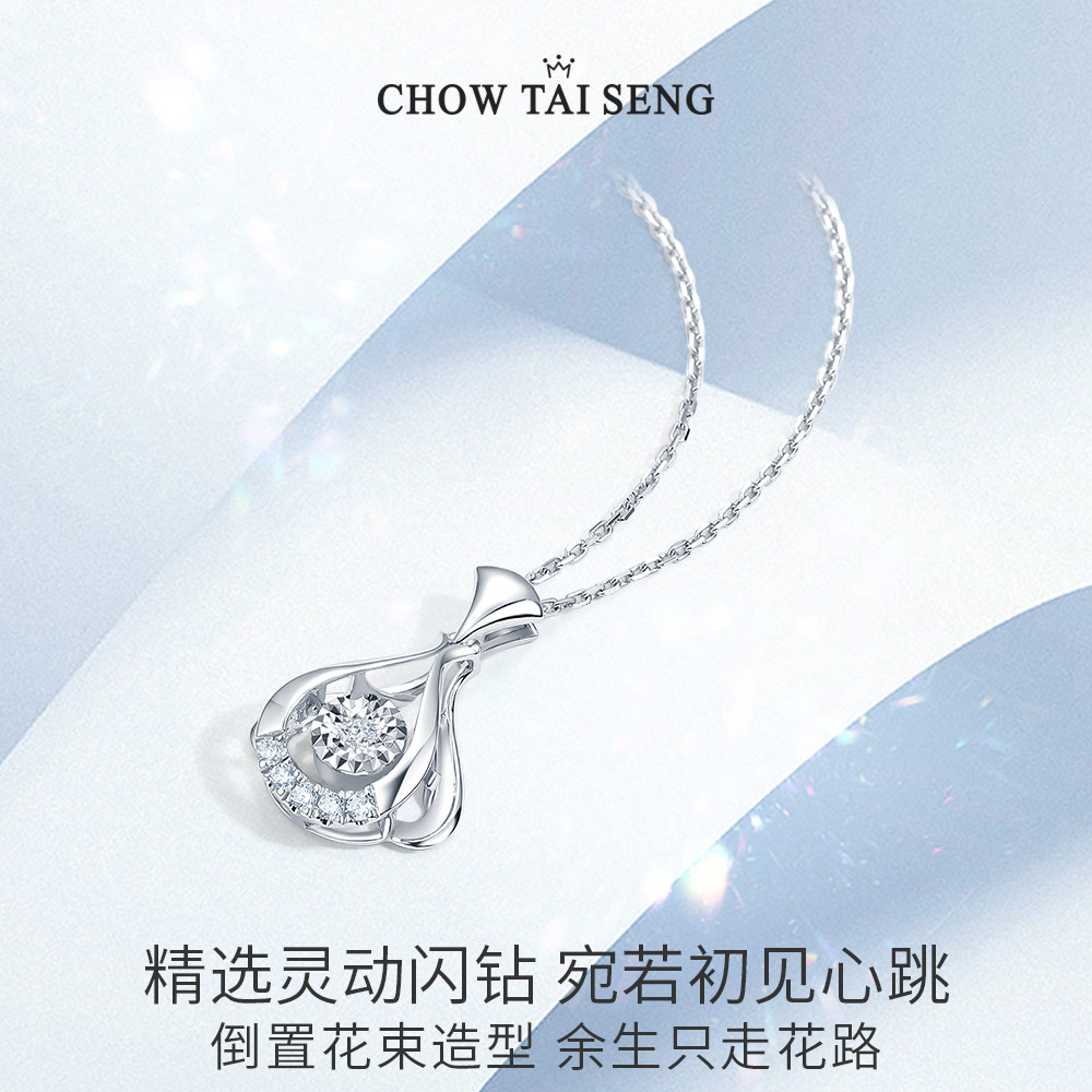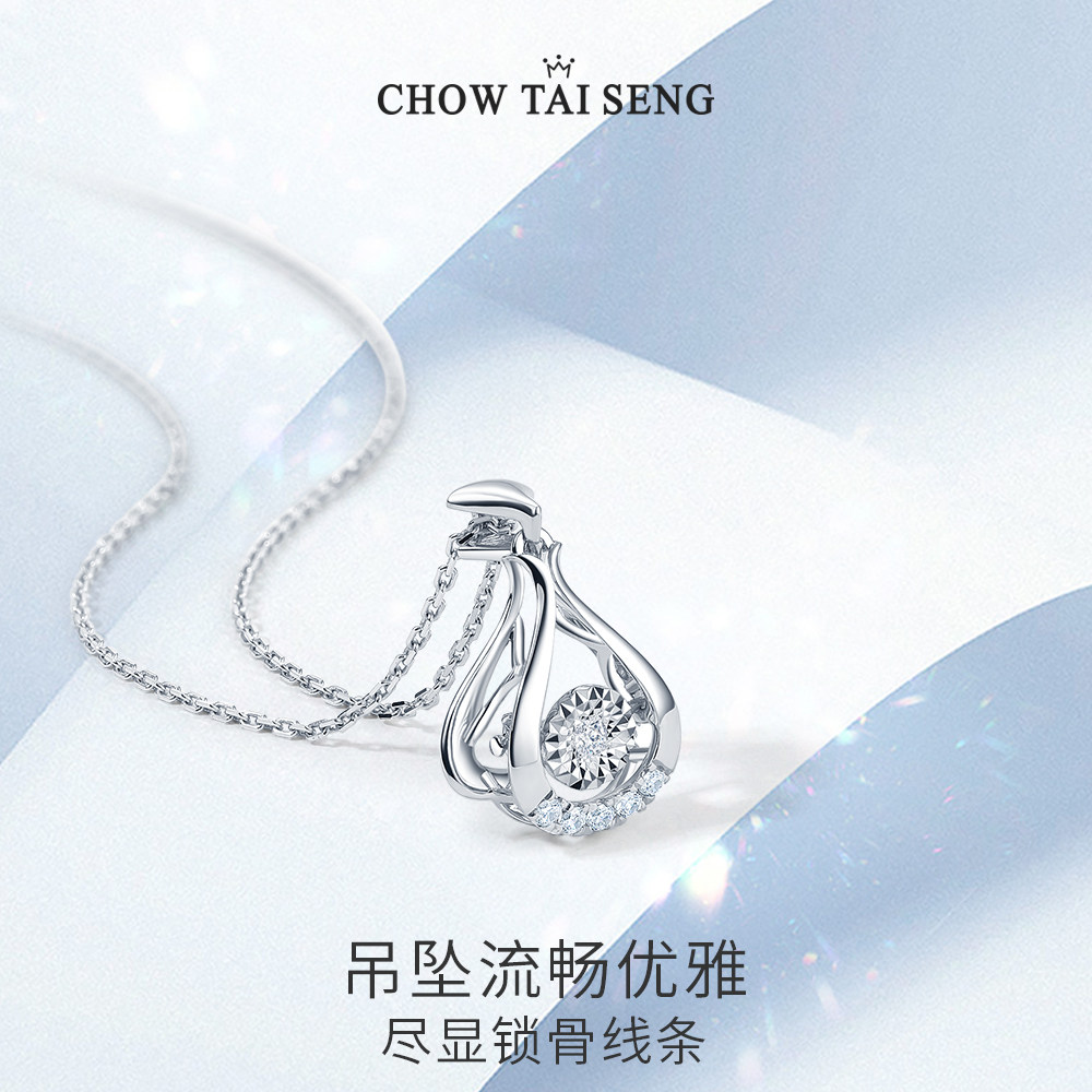 Chow Tai Sang Smart Diamond Necklace Pendant Women 18K Gold Platinum Collarbone Chain Pendant Valentine's Day Wedding Gift