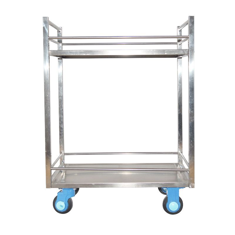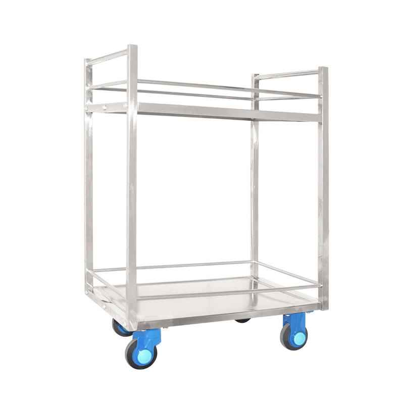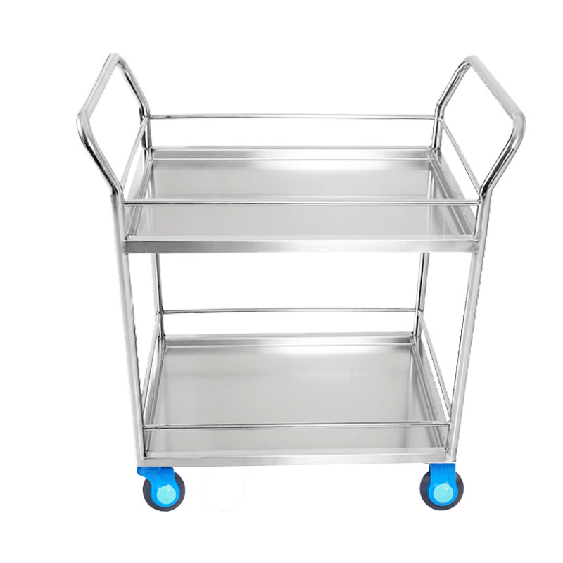 Even and Uni-Silent small flat truck Medical ultra-static thickened stainless steel folding double layer with guardrails trolley