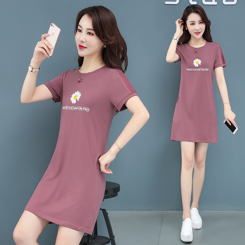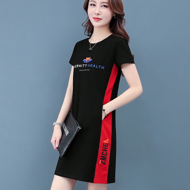 Women's summer clothes 2022 new dress fat mm loose and thin medium-length version cover belly T-shirt skirt thin and reduce age K