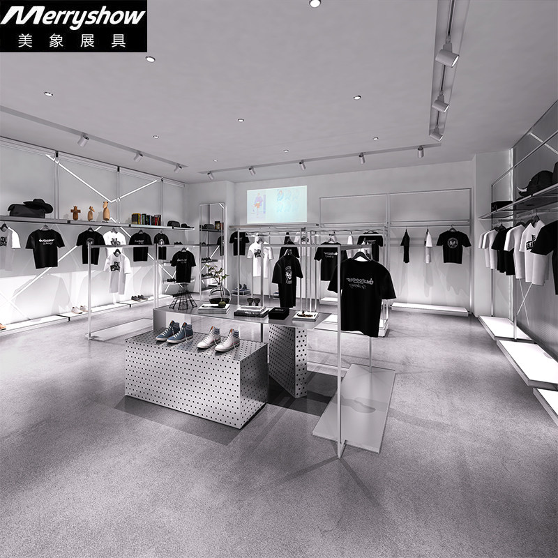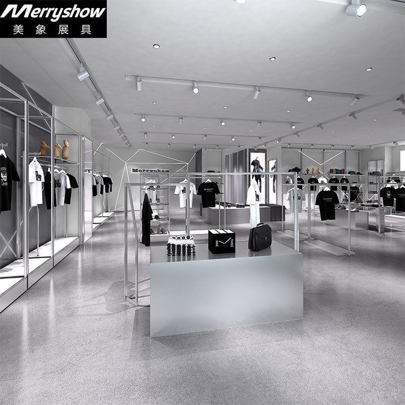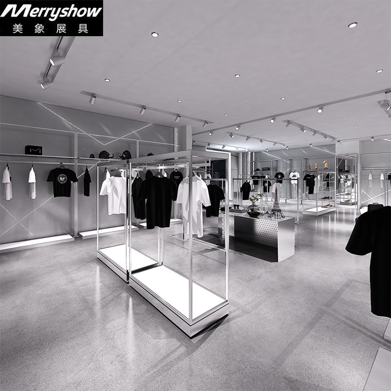 Beauty elephant men's clothing store brushed stainless steel shelf display stand on the wall luminous floor-to-ceiling display stand Nakajima display stand