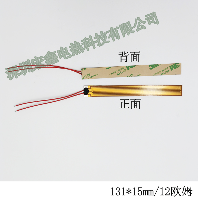 Shenzhen Hongxin 131*15 flexible heating film 12 ohm heating sheet PI heating sheet polyimide heating film