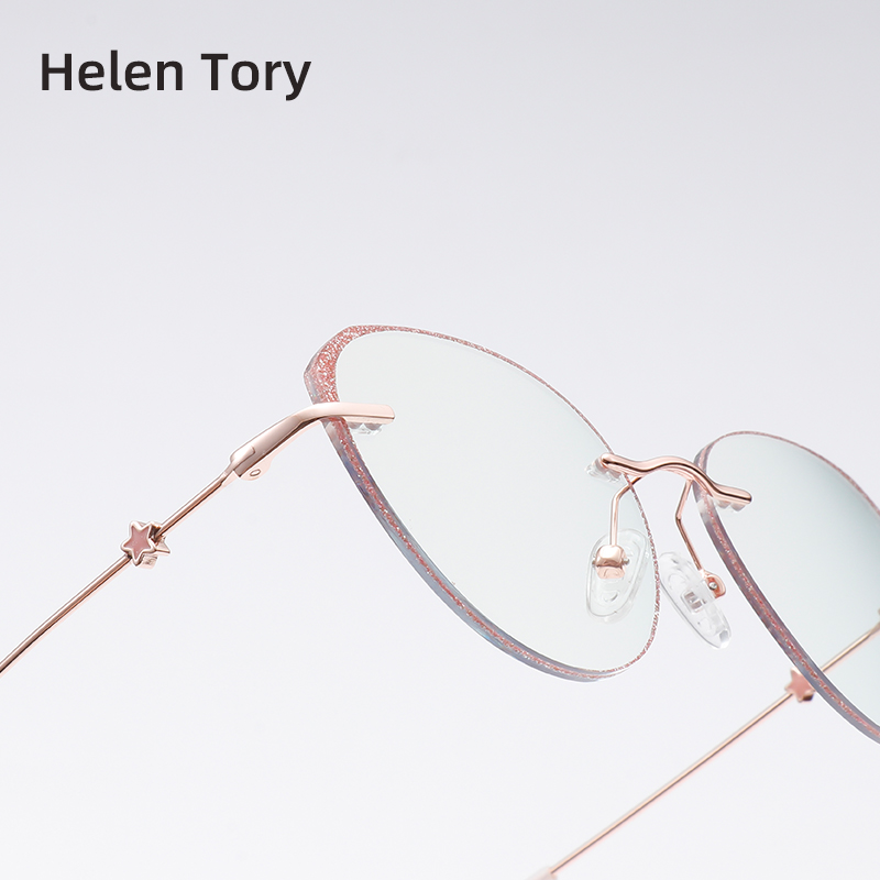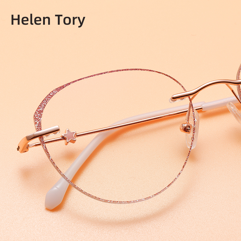 Helentory myopia glasses female Korean version fashion web celebrity frameless retro anti-blue lens can be matched