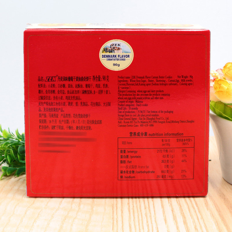ZEK Food Flagship Store Malaysia Imported Food Cream Chocolate Raisin Cookies 90g Snacks
