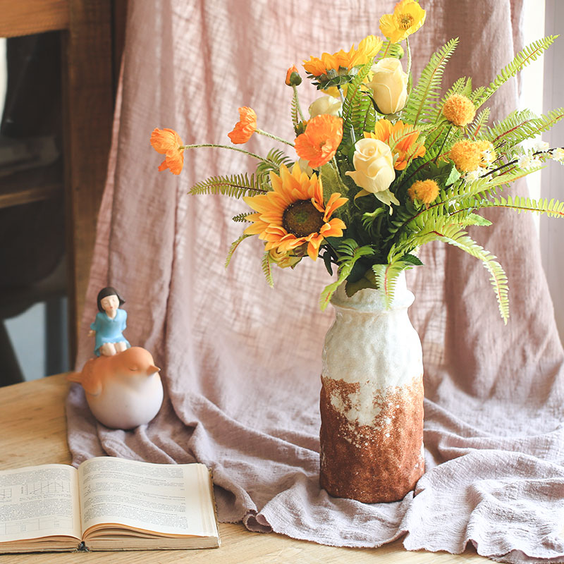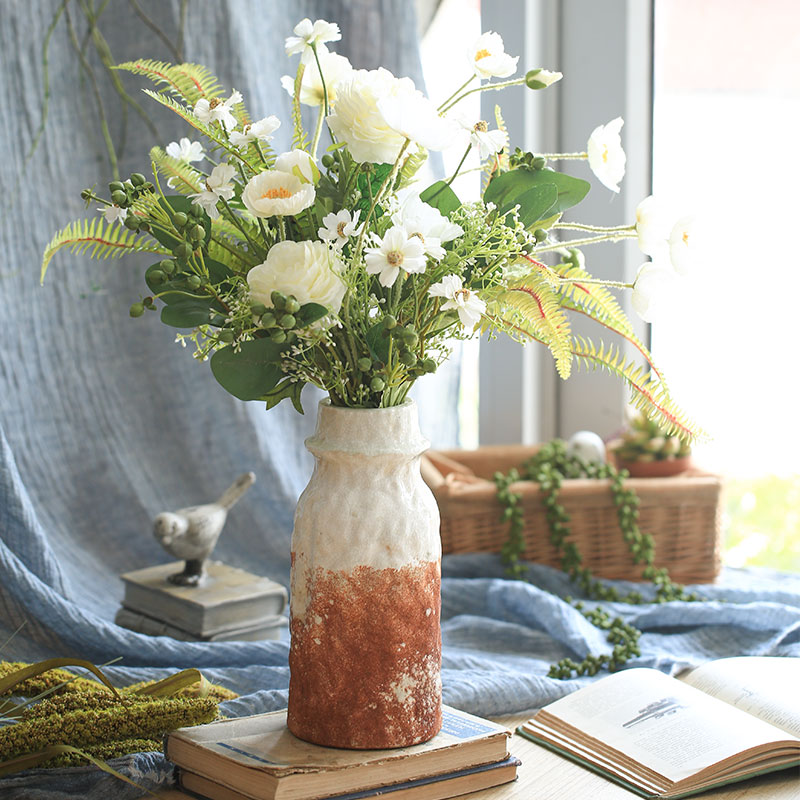 (Seven Jasmine) Retro Red Pottery Color Ceramic Vases American Countryside Ice Cracks Art Decor Table Flower Floral-Taobao
