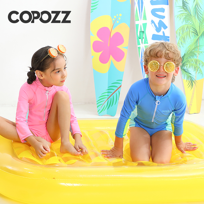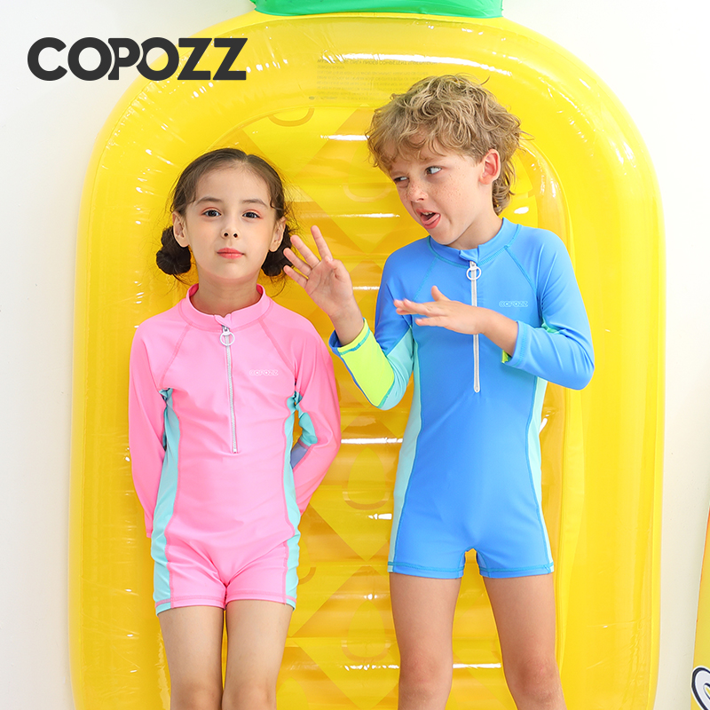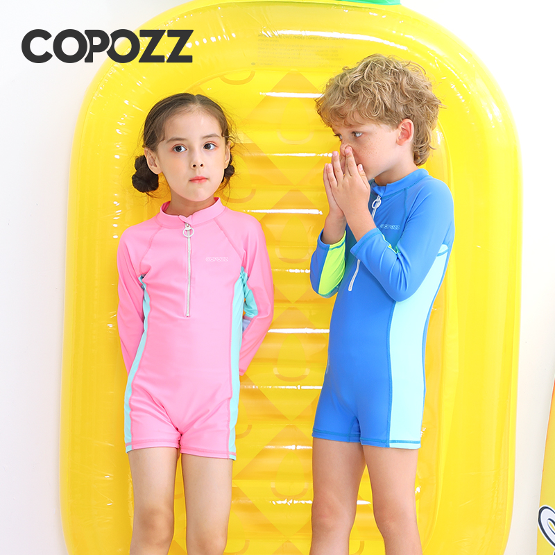 COPOZZ children's swimsuit Men's and women's one-piece sunscreen quick-drying middle and large children's baby swimwear swimming trunks swimming cap set