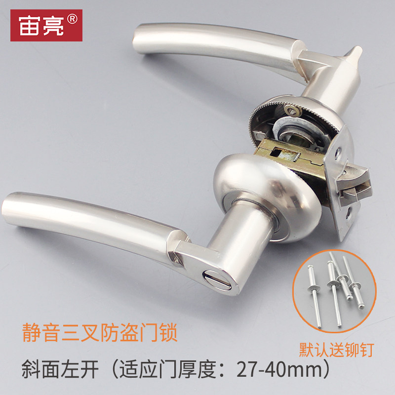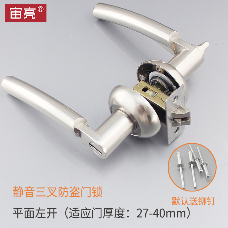 Powder room aluminum-magnesium alloy powder room handle lock upper and lower fixed hole three-bar hand lock suitable for door thickness 27-40