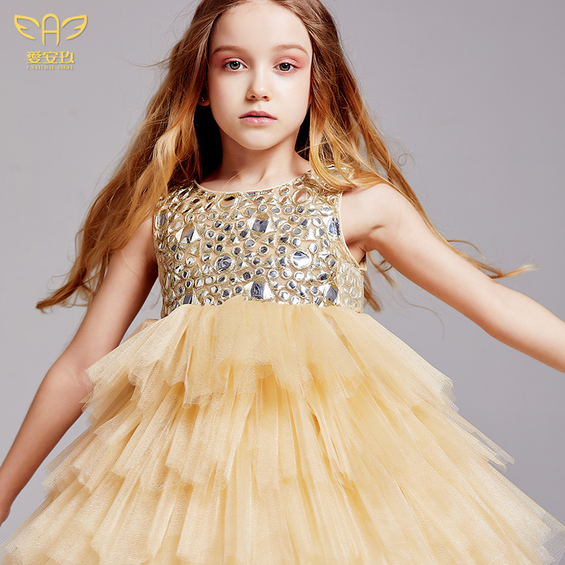 Ianjiu children's dress Princess skirt Puff yarn girls high-end evening dress Show catwalk Model Piano noble